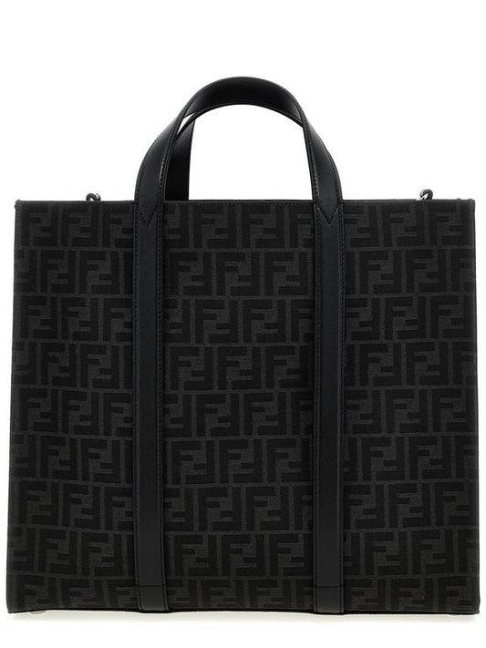 Fendi FF Jacquard Fabric Shopper Tote Bag Black