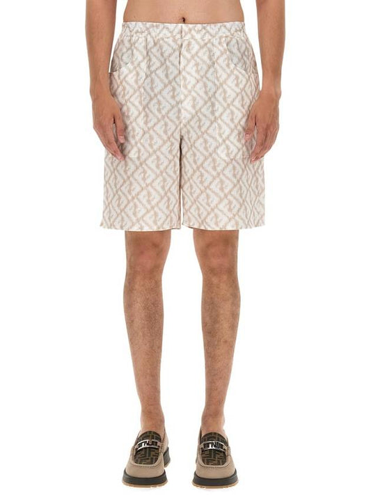 Fendi Logo Monogram Linen Bermuda Shorts Beige