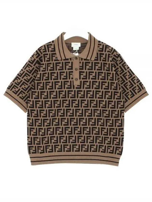Fendi Kids FF Motif Polo Short Sleeve T-Shirt Brown