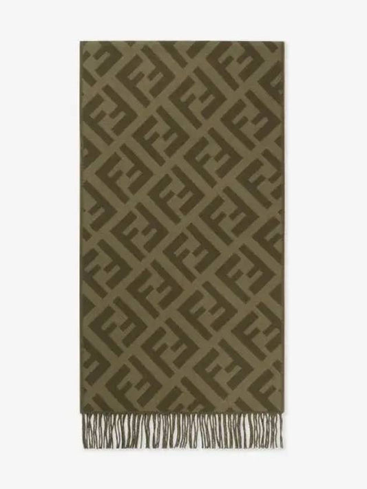 Fendi FF Motif Fringe Cashmere Scarf Green