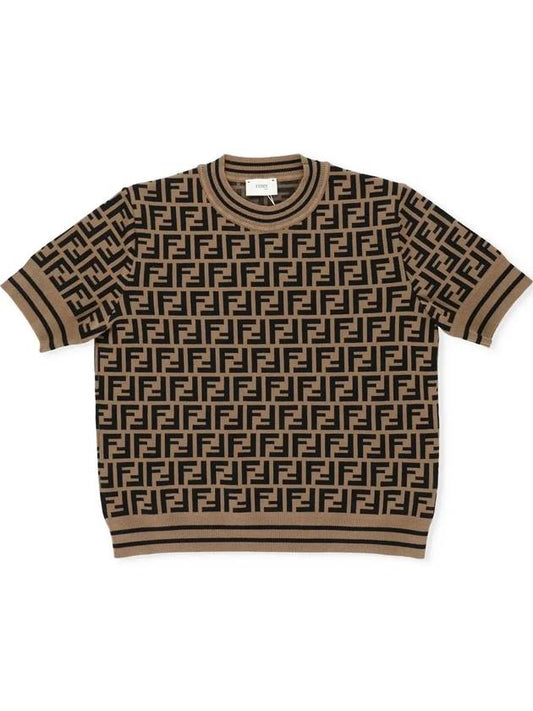 Fendi Kids FF All Over Short Sleeve Knit Top Brown