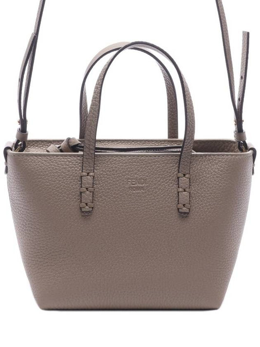 Fendi Mon Tresor FF Motif Leather Mini Bucket Bag Grey