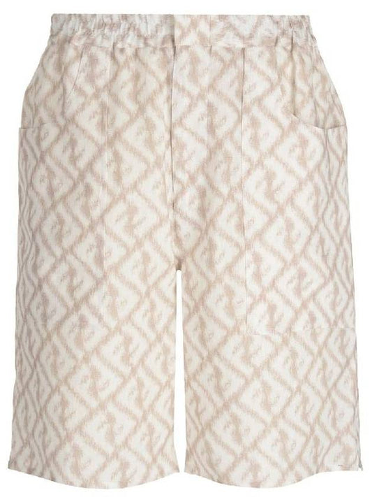Fendi Logo Monogram Linen Bermuda Shorts Beige