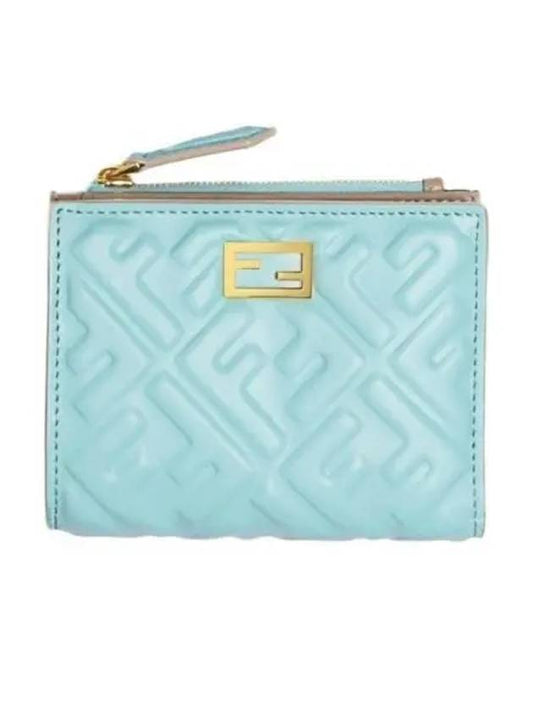 Fendi Slim Baguette Leather Half Wallet Light Blue