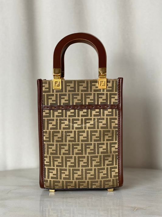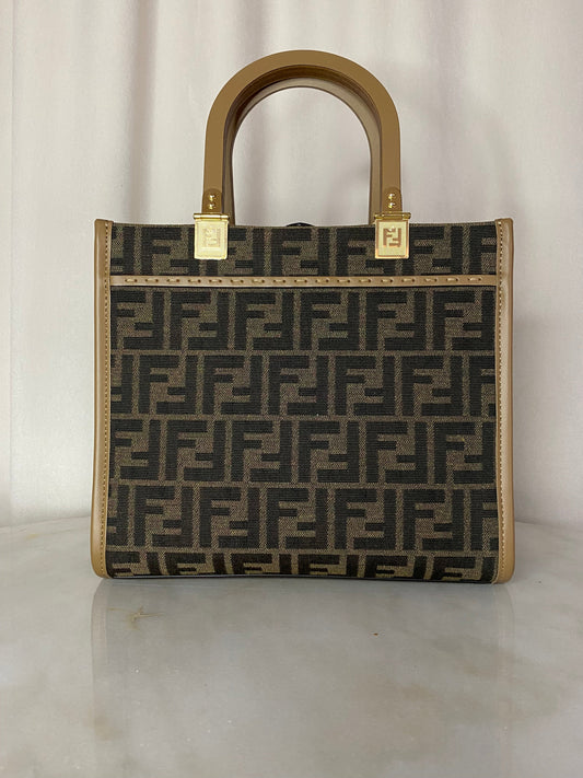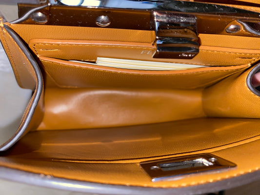 Fendi Brown Flower Petite Peekaboo Top Handle Bag W/ Strap