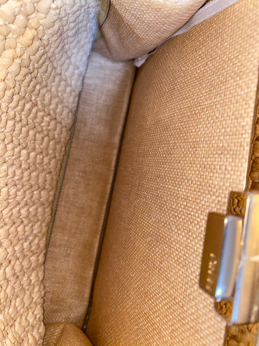 Fendi Beige Raffia Peekaboo I See U Top Handle Bag W/ Strap