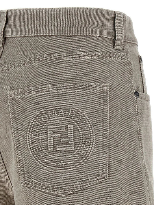 FENDI Medium Denim-Effect FF Jacquard Handbag