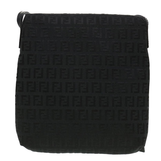 FENDI Zucca Canvas Shoulder Bag Black Brown Auth am1243g