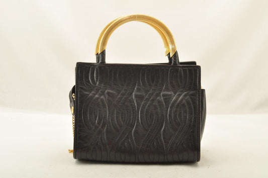 FENDI Chain Hand Bag Leather 2way Black Auth am2376s