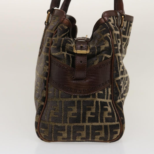 FENDI Zucca Canvas Tote Bag Velor Brown Black Auth ar6954