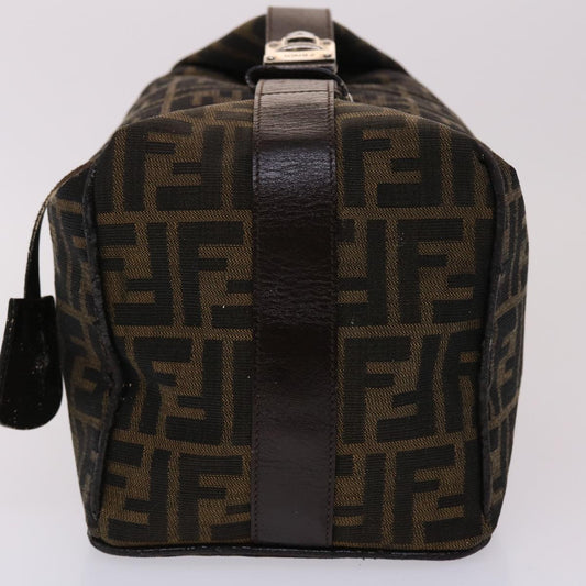 FENDI Zucca Canvas Vanity Hand Bag Nylon Brown Black Auth 48013
