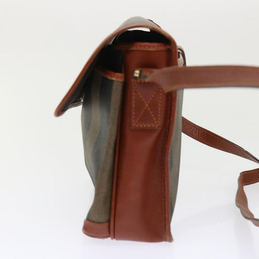 FENDI Zucchino Canvas Shoulder Bag Leather Brown Auth ac2009
