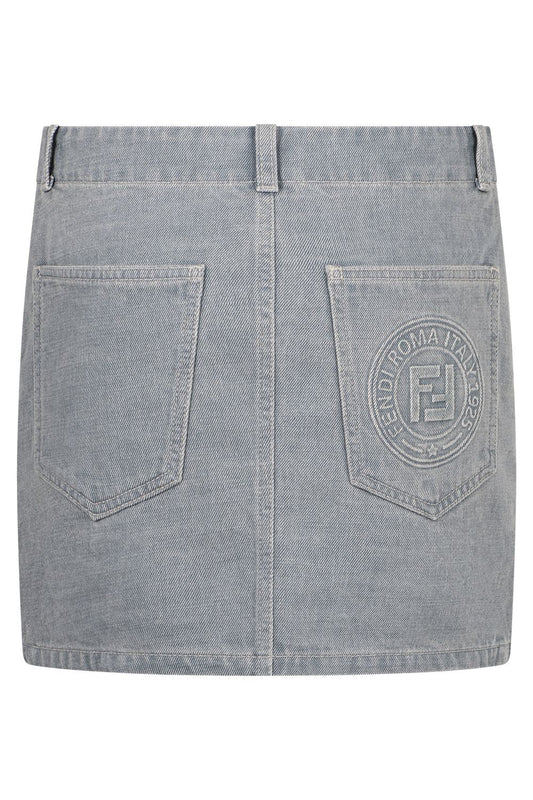 FENDI Women's Mini Denim Skirt with Logo Back