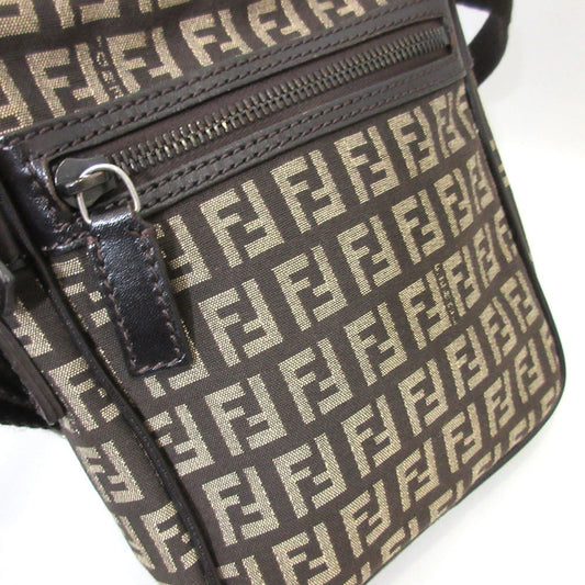 Fendi Bag Zucchino Mini Shoulder Pochette Brown Women's Canvas Leather