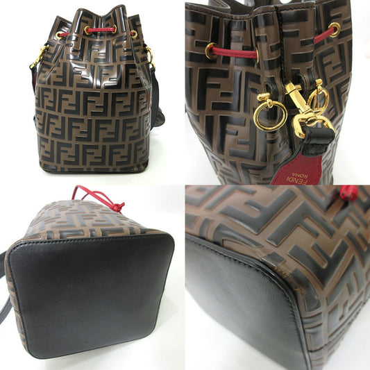 Fendi Bag Montresor Drawstring Shoulder Khaki x Red Zucca Semi-Shoulder Women's Leather FENDI