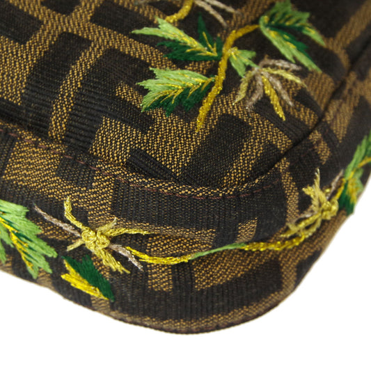 FENDI Embroidered Zucca Baguette Handbag Brown Gold 97872