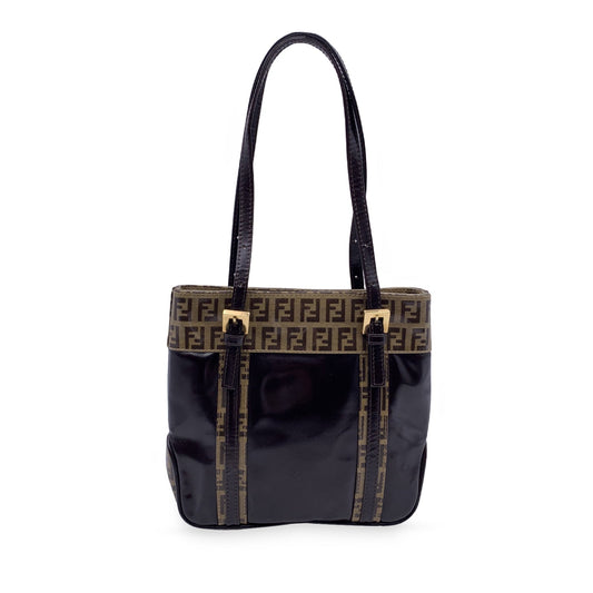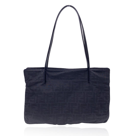 FENDI Black Monogram Zucca Canvas Tote Shoulder Bag