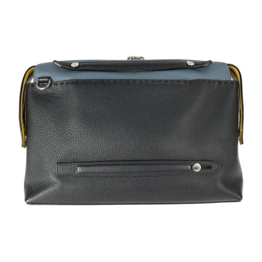 FENDI Visor Way Selleria Business Bag 7VA458 Leather Black Blue Yellow Silver Hardware 2WAY Shoulder
