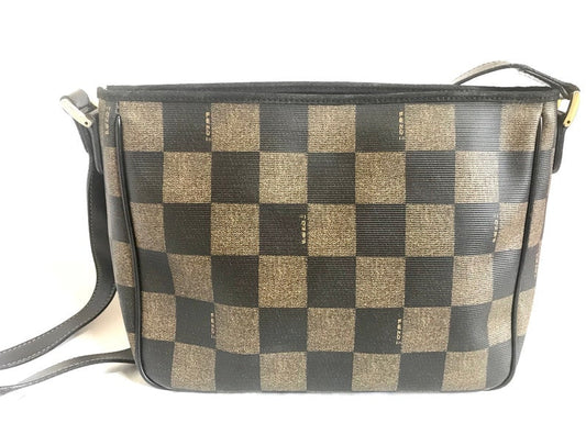 FENDI Vintage pecan chess pattern shoulder bag with FF logo motif