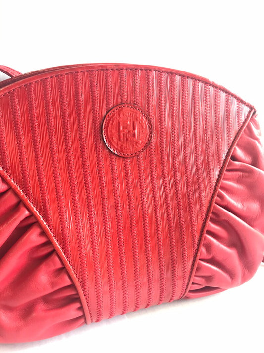 FENDI 80's vintage red patent enamel and nappa leather oval round shape shoulder purse