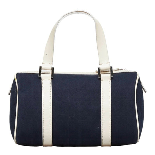FENDI handbag navy white canvas leather ladies