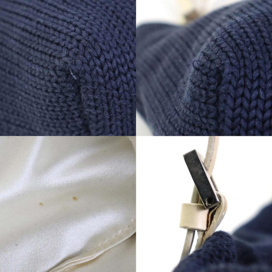 FENDI shoulder bag tote wool/leather navy/off-white silver ladies e55874i