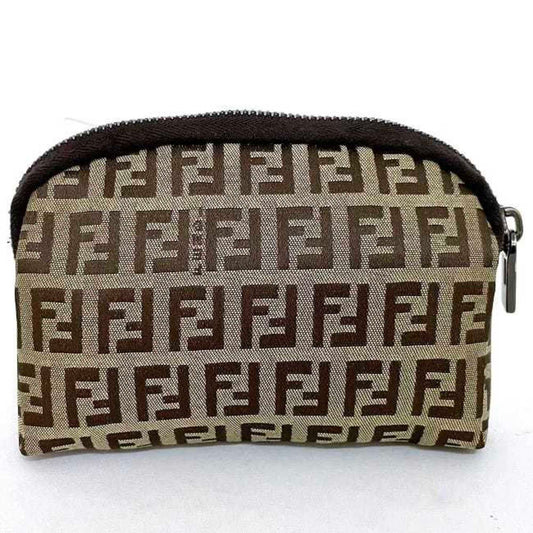 FENDI Pouch Beige Brown Zucchino 7N0003 Canvas Leather FF Women's