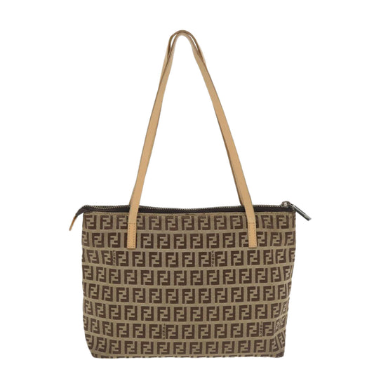 FENDI Zucchino Canvas Shoulder Bag Brown am3565