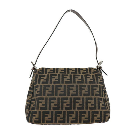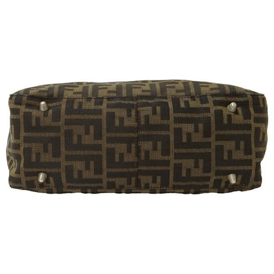 FENDI Shoulder Bag Zucca Canvas/Leather Brown Silver Ladies