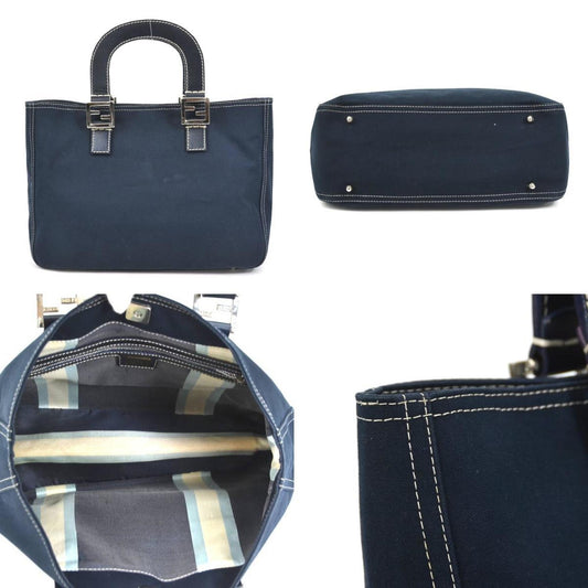 FENDI Handbag Canvas/Leather Navy Silver Ladies