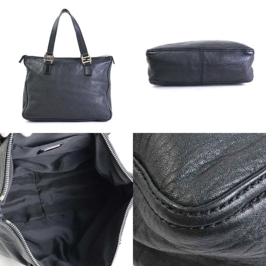 FENDI Handbag Tote Bag Leather Black Silver Unisex