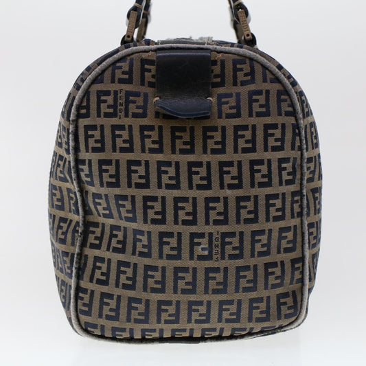 FENDI Zucchino Canvas Hand Bag Leather Navy ki3064
