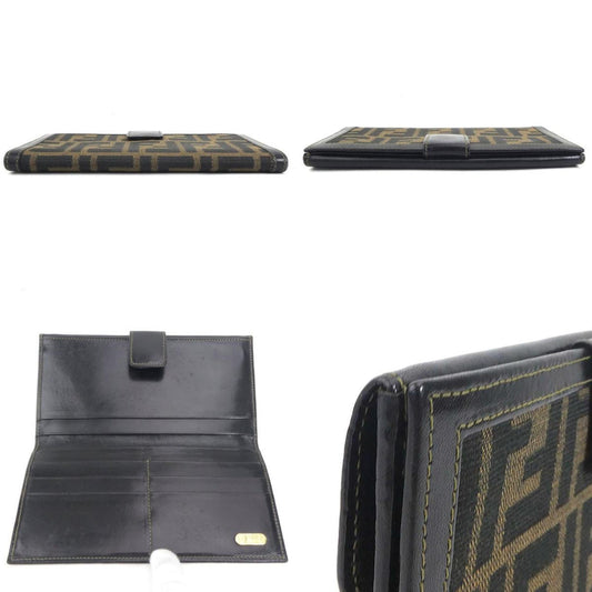 FENDI Bifold Long Wallet Zucca Canvas/Leather Brown Ladies