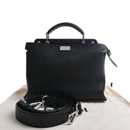 FENDI Selleria Leather Peekaboo Essential Handbag 7VA506 Black Ladies