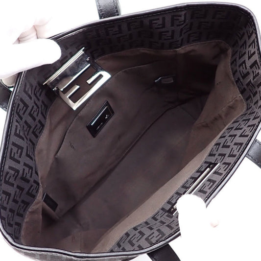 FENDI Zucchino Zucca Pattern Tote Bag Shoulder Canvas Leather Black 8BH161