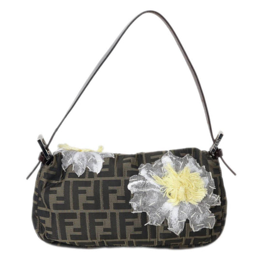 FENDI Zucchino Canvas Shoulder Bag Dark Brown fm2601