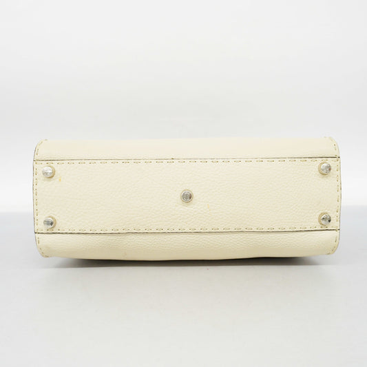 FENDI Peekaboo 2way Bag Selleria Leather Handbag,Shoulder Bag Gray,Ivory