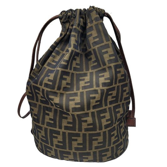 FENDI Zucca pattern bag brown khaki leather storage foldable nylon women's men's unisex