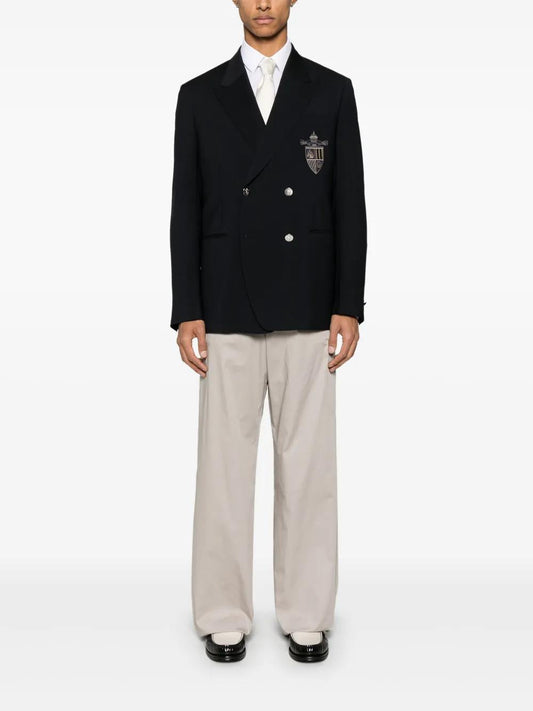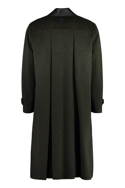 FENDI Wool Blend Jacket with Leather Collar for Men