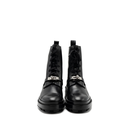 Hermes Size 38 Funk Ankle Boot Glazed Calfskin Black SHW