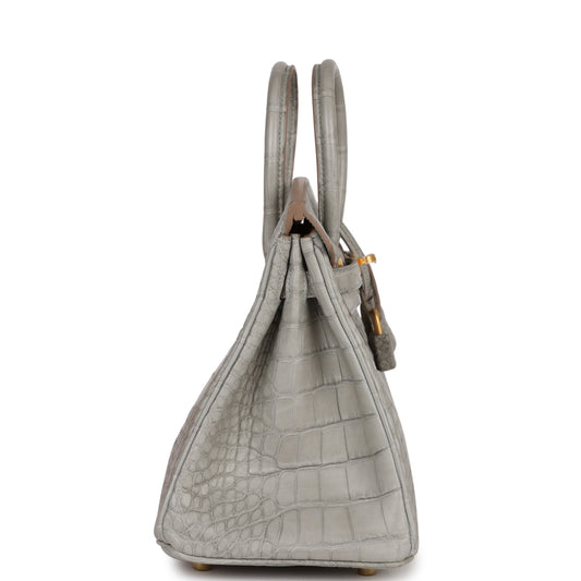 Hermes Special Order (HSS) Birkin 25 Gris Perle Verso Matte Alligator Brushed Gold Hardware