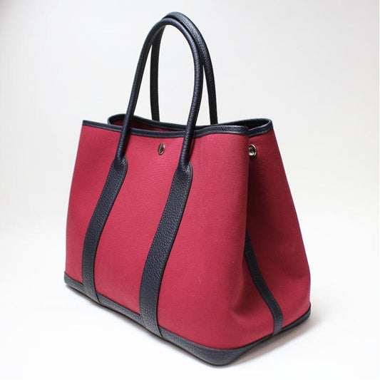 Hermes Rouge Moyen Garden Party Leather PM Toile Tote (SHA25734)