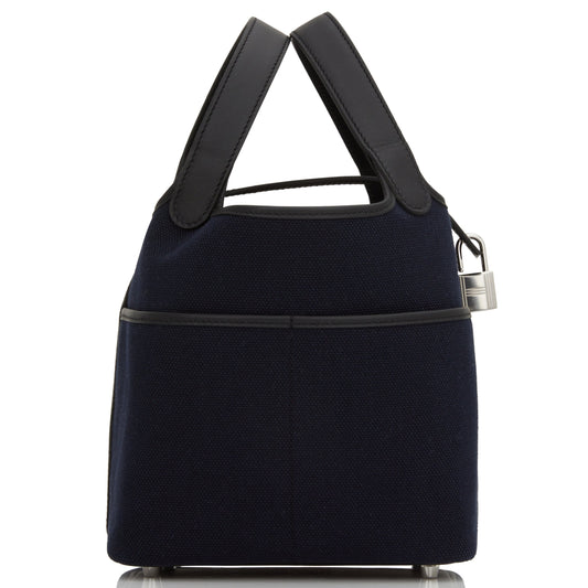 Hermes Picotin Cargo 18 Bleu Marine and Black Swift and Toile Canvas Palladium Hardware