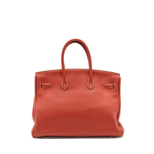 hermes birkin 35 togo sanguine / blanc SHW stamp square O