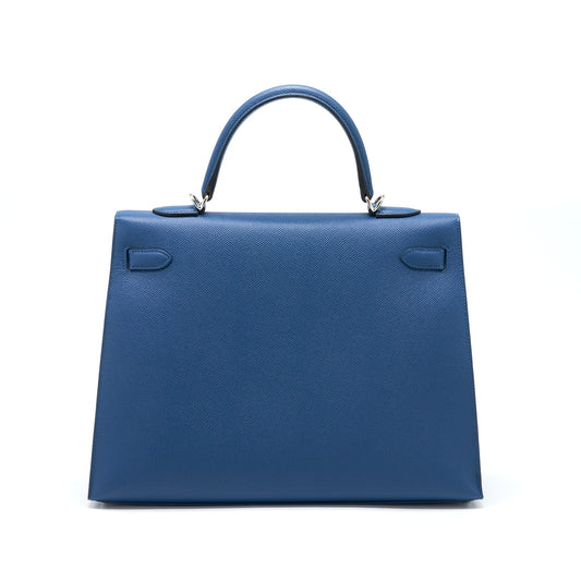 Hermes Kelly 35 Epsom S4 Deep Blue SHW Stamp D