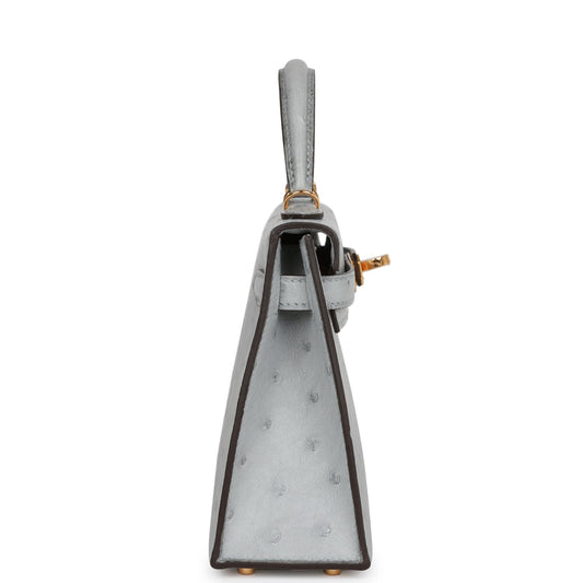 Hermes Kelly Sellier 20 Bleu Glacier Ostrich Gold Hardware