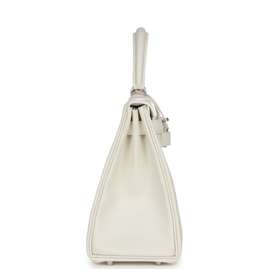 Hermes Kelly Retourne 28 White Evercolor Palladium Hardware