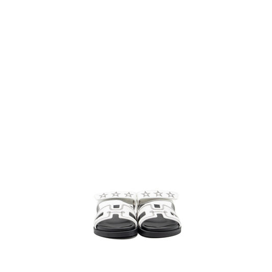 Hermes Size 36.5 Chypre Sandals Star Embroidered White