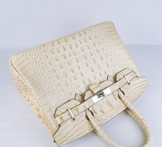 Hermes Birkin 30cm Crocodile Head Vein Handbags Beige Silver