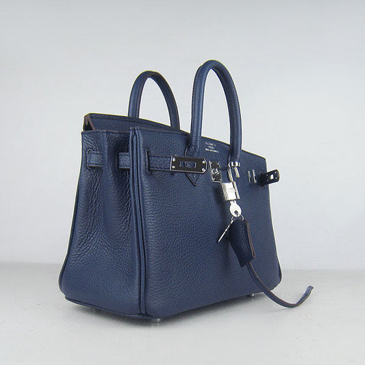 Hermes Birkin 25cm Handbag 6068 dark blue silver